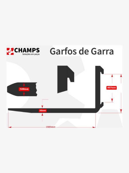 Garfo para Empilhadeiras Tipo Garra Classe 2A 70pol. 1800mm até 2500kg com entrega rápida e envio para todo o Brasil.